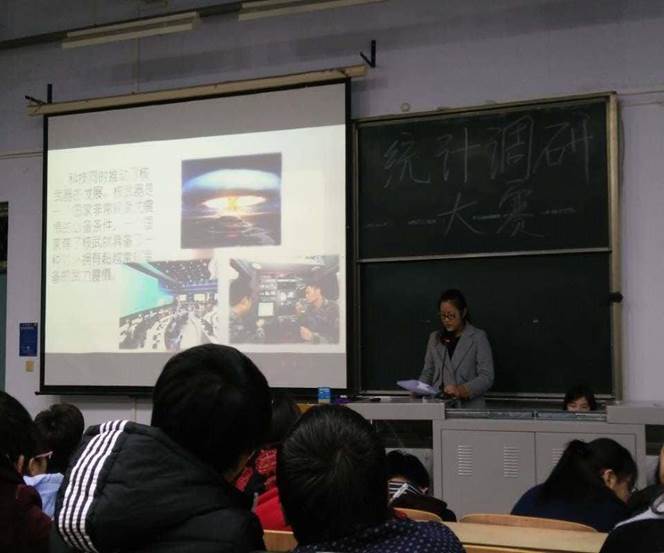 2015年12月4日星期五晚七点,由best365足球官网统计调研与分析协会举办的统计调研大赛在教室B合二十隆重举行,莅临此次大赛的嘉宾有团总支书记沈会焘、员工会主席童伟、主席团成员及各班学霸代表,并担任此次的评委。