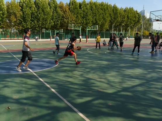 下午两点半,比赛的序幕随着裁判员的一声令下拉开。队员们迅速发球、抢球、扣篮。那穿梭在篮球架间矫健的身躯、娴熟的动作、如飞的脚步无不传达着同学们对篮球的热爱和班集体的团队精神。每次的跳跃都散发着青春的活力与蓬勃的朝气。同学们那激情饱满的呐喊声于篮球场久久回荡。那一张张洋溢着活力、朝气、斗志和友谊的笑脸正如晴天绽放的花蕾。14级队员由于训练机会多,配合默契,在赛场上略胜一筹,15级新生在体力方面不及学长,但是依然挺着疲惫的身躯坚持到比赛结束,他们用这种昂扬的斗志,饱满的激情点燃青春的火炬。最后14级队员以45:26的成绩赢得胜利。