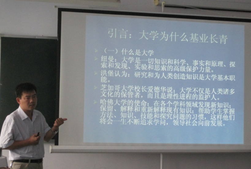 下午的培训中,徐来群博士作了题为“高等教育漫谈”的专题讲座。徐来群博士结合自己的研究领域首先就大学的起源、精神、功能、组织特性、结构、课程设置、价值取向等方面进行了讲解,之后对高等教育的大众化和国际化两个趋势进行了分析和评价。