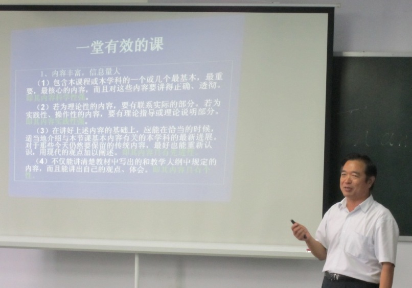 上午的培训中,李新生副教授作了题为“教学常规—备课、讲课、说课、听课、评课”的专题讲座。李新生副教授从大学的教学目标、教学流程、教学手段等方面做了全面的分析讲解。他分别从教学理论和教学实践出发,深入探讨大学教学的课程内容、教材、员工,教学目标,教学方法、教学步骤等问题,分析深层次的原因,并提出相应的对策。同时李新生副教授还指出了备课要要弄清楚的问题和做好的事情,讲解了教案的标准和基本内容,阐述了一堂好课的标准、说课的要求等。