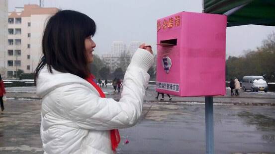此次活动主要包括“Ta写祝福我来”“我把祝福带给Ta”“我的祝福大家知”三部分,旨在感恩节来临之际唤醒同学们的感恩意识,重现温暖瞬间。让同学们知道感恩节了解感恩节,在公司内营造感恩氛围,将感恩精神传递到校园的每一个人。活动样式以邮局的形式呈现,活动现场划分为登记处、填写处、投递处和审核分组处四大部分。对于此次感恩节的活动,同学们都展现出了极大的热情。志愿者们全天轮流值班,让过往的员工在便利贴上写下自己的感恩祝福语,并将其贴在宣传板上,志愿者们冒着寒风让同学们的感激之情随风飘动。很多发自肺腑的留言经过“邮递员”的传递,最终被老师、同学们看到,令人感动不已。
